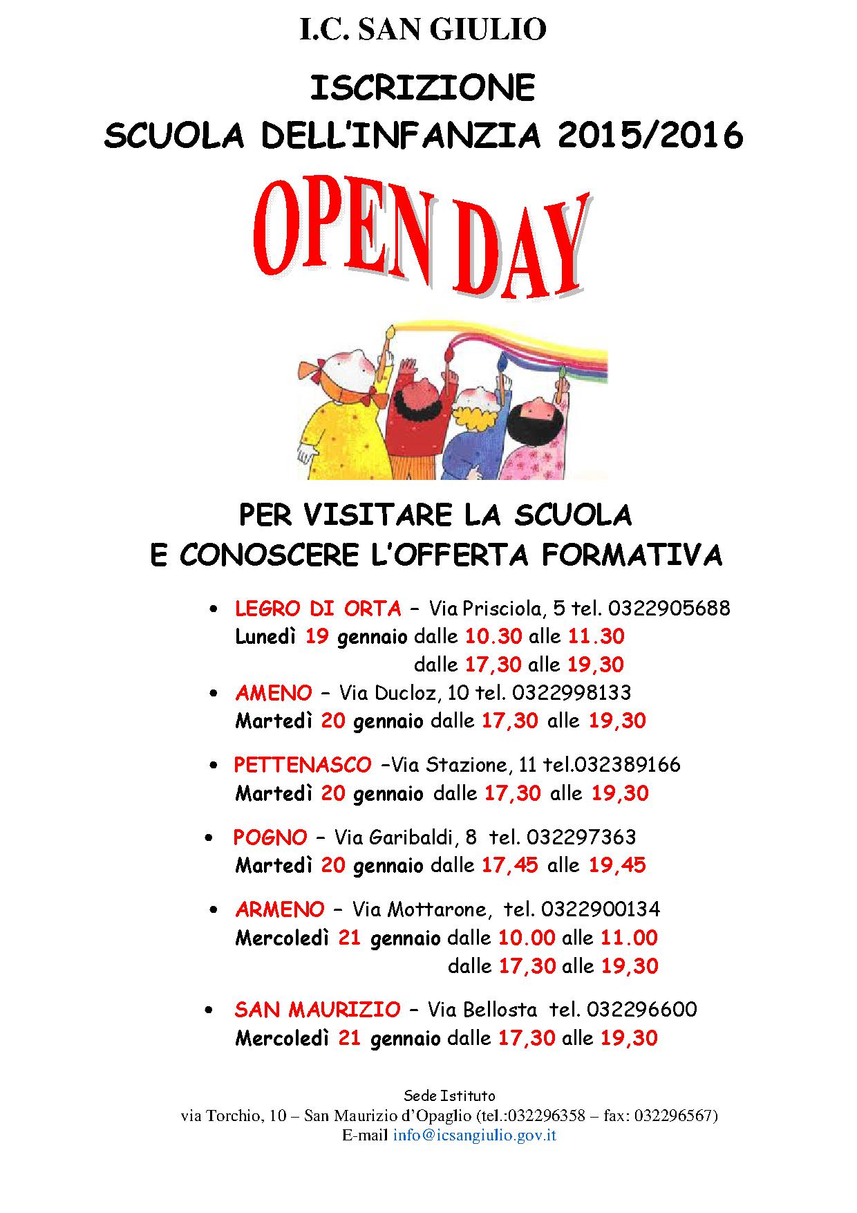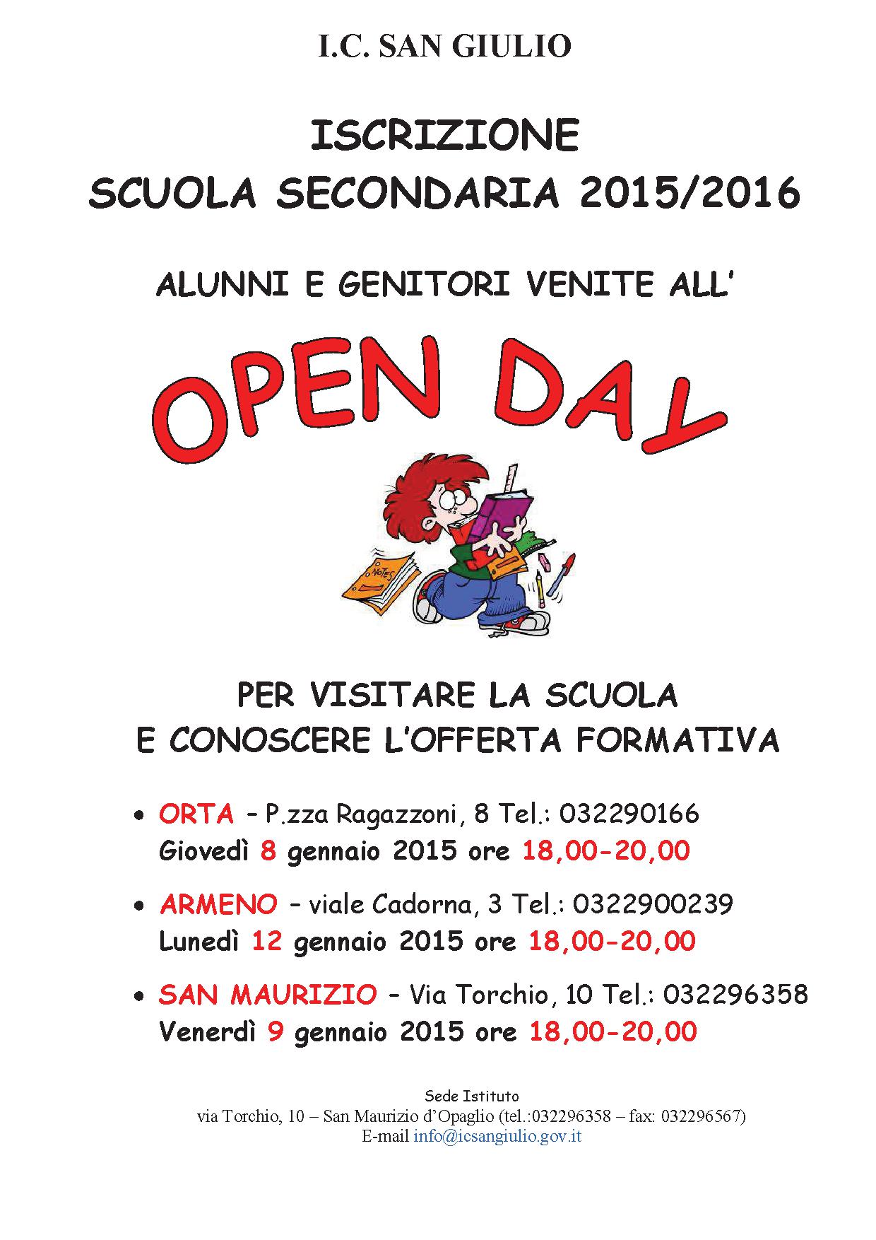 Modalità per l'iscrizione alla scuola per l'anno scolastico 2015/2016 e informativa sugli open-day