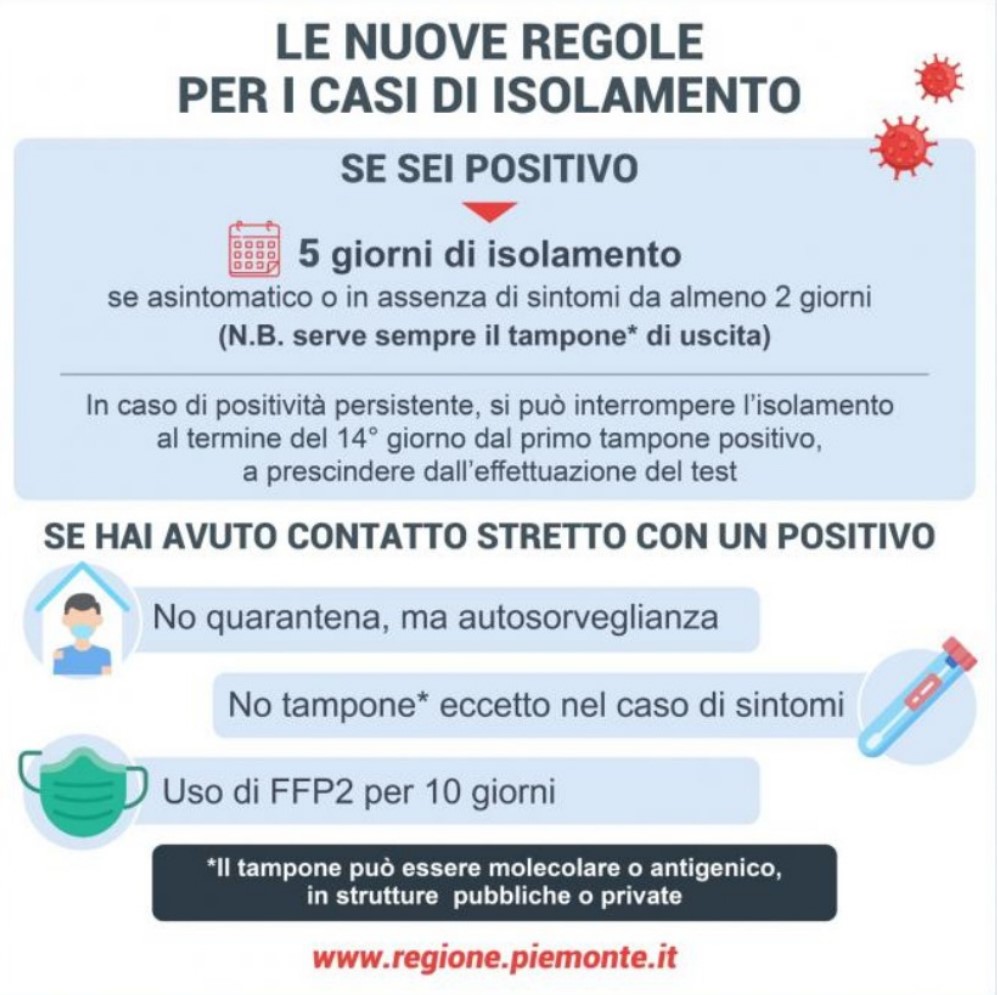 - per i casi che sono sempre stati asintomatici oppure sono stati dapprima sintomatici ma risultano asintomatici da almeno 2 giorni, l’isolamento potrà terminare dopo 5 giorni, purché venga effettuato un test, antigenico o molecolare, che risulti negativo, al termine del periodo d’isolamento.