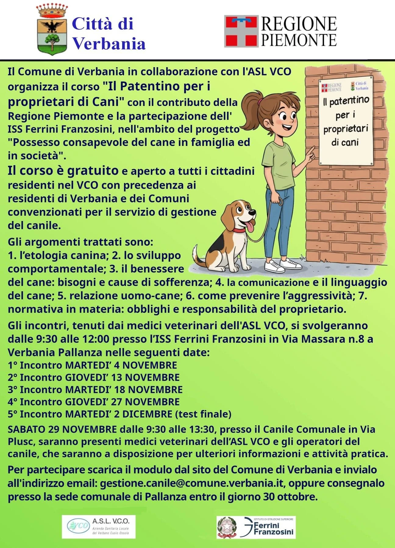 La partecipazione al corso è gratuita e aperta a tutti i cittadini proprietari e detentori di cani o coloro che