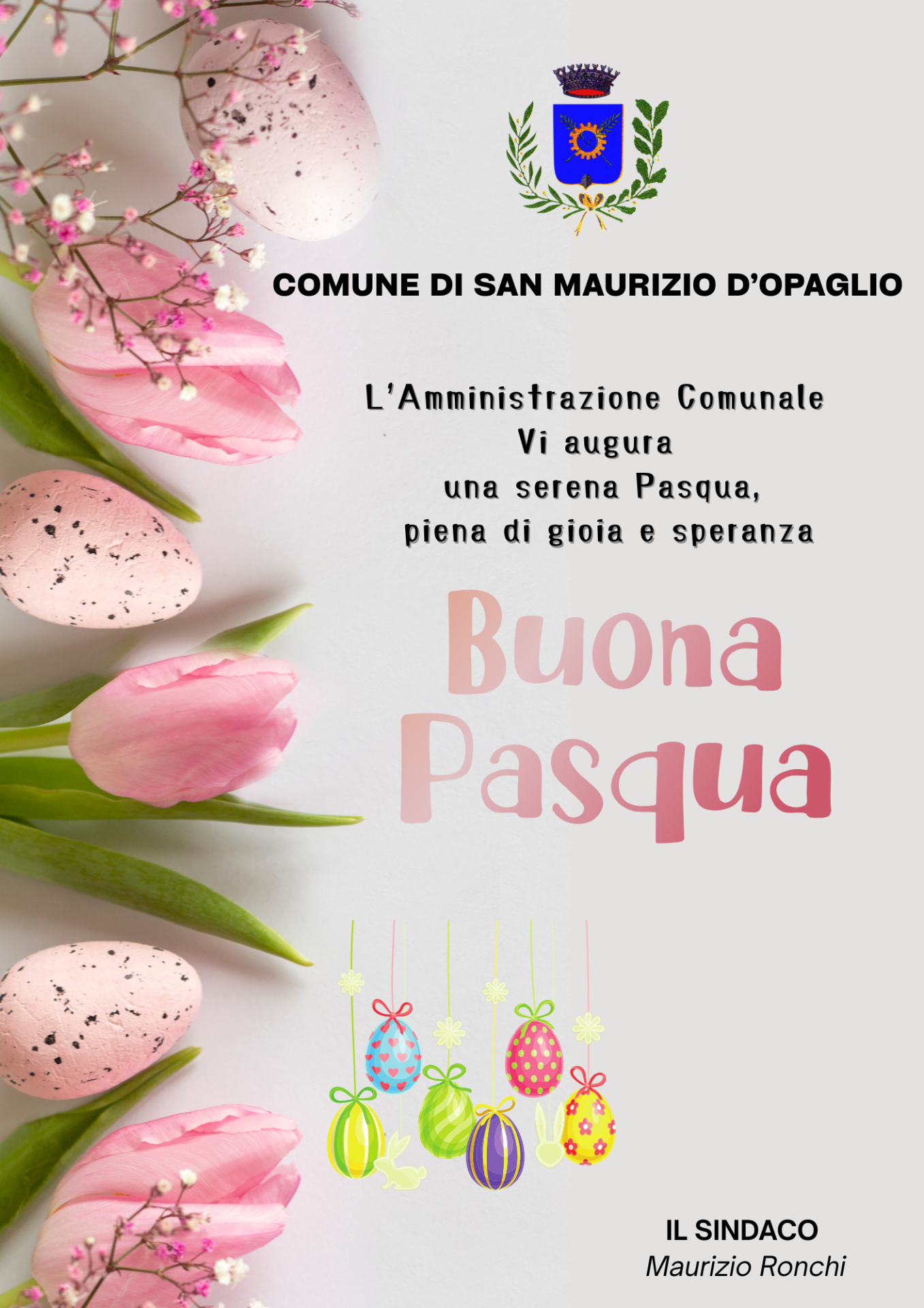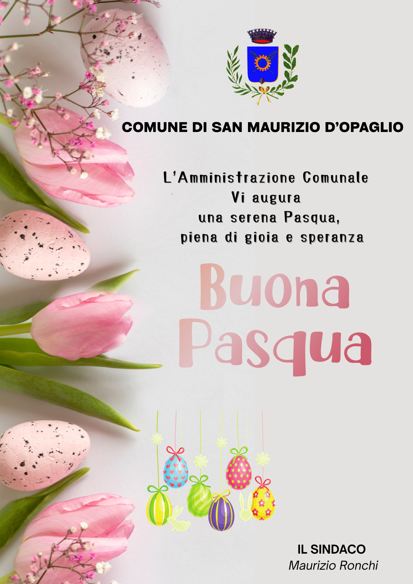 L'Amministrazione Comunale Vi augura una serena Pasqua piena di gioia e speranza. Il Sindaco Maurizio Ronchi