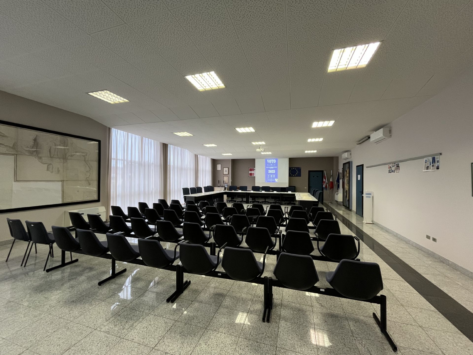 La sala Consiglio, dal design moderno e dotata di impianto di amplificazione - audio - proiezione, ha una capienza complessiva di 80 posti totali.