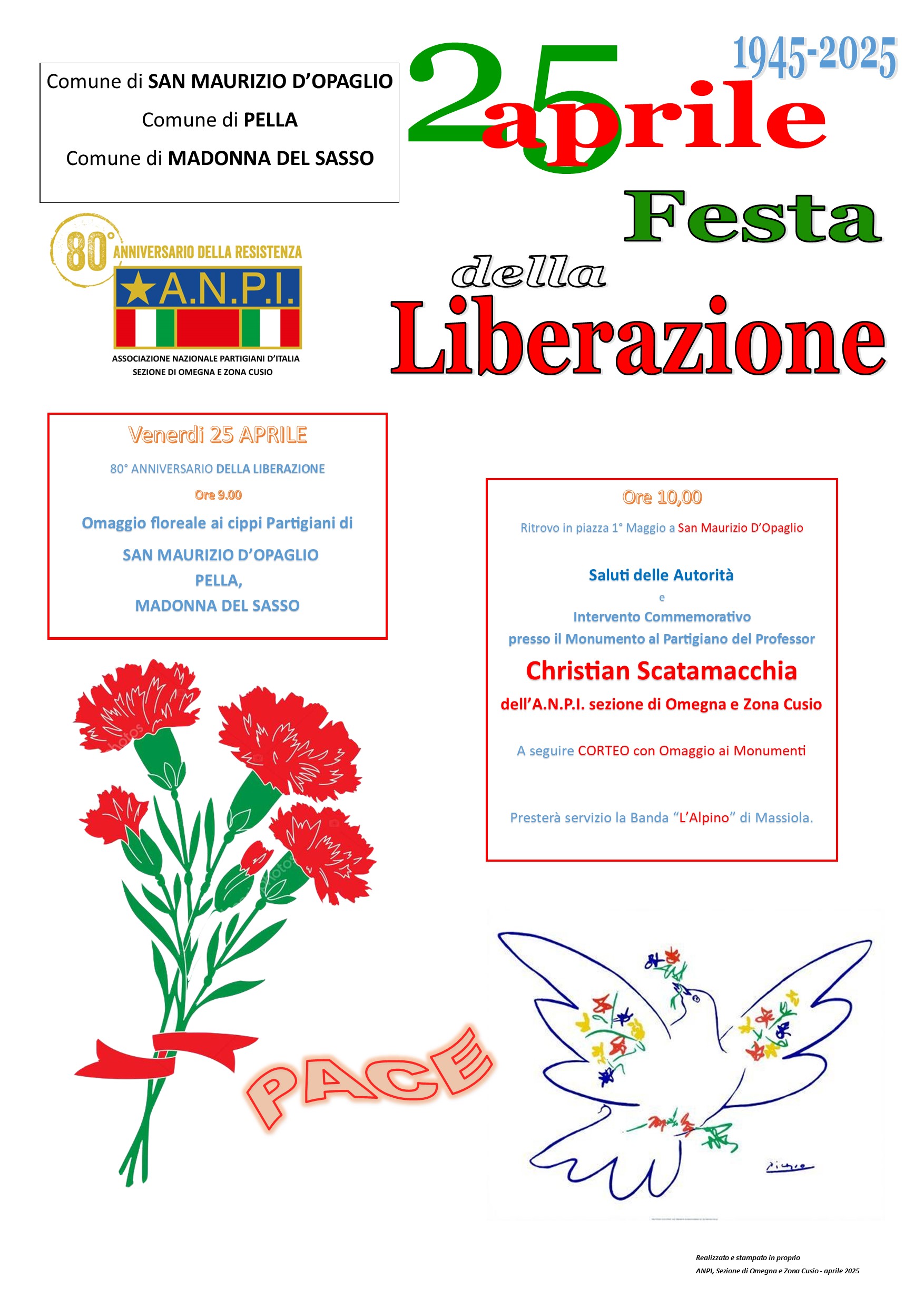 ore 10:00 ritrovo in Piazza I Maggio a San Maurizio d'Opaglio, saluti delle autorità ed intervento commemorativo c/o il Monumento al Partigiano del Professor Chirstian Scatamacchia dell'A.n.p.i. sezione di Omegna e Zona Cusio.