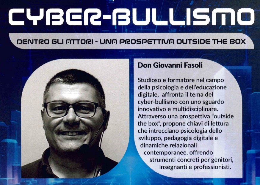 Don Giovanni Fasoli (studioso e formatore nel campo della psicologia e dell’educazione digitale) affronta il tema del cyber-bullismo con uno sguardo innovativo e multidisciplinare. Attraverso una prospettiva “outside the box”, propone chiavi di lettura che intrecciano psicologia dello sviluppo, pedagogia digitale e dinamiche relazionali contemporanee, offrendo strumenti concreti per genitori, insegnanti e professionisti.