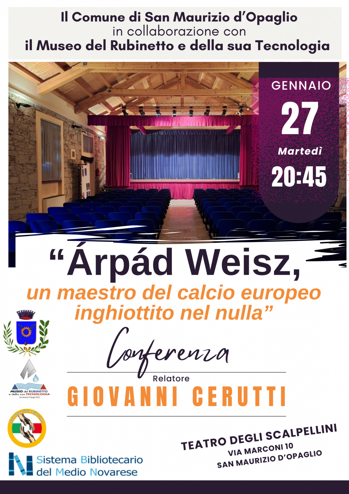 Si terrà la conferenza "Árpád Weisz - Un maestro del calcio europeo inghiottito nel nulla" con il relatore Giovanni Cerutti.